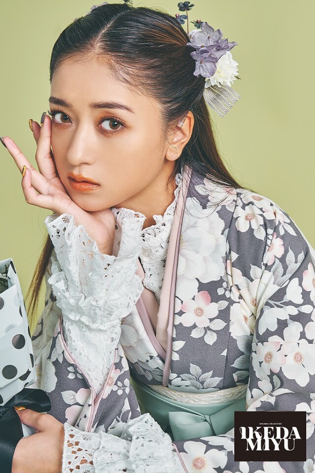 商品名 | 池田美優(みちょぱ)着用袴ネットレンタル くすみカラー古典 グレー 小花柄 可愛らしい レースインナーコーデ ブーツスタイル R25022 |