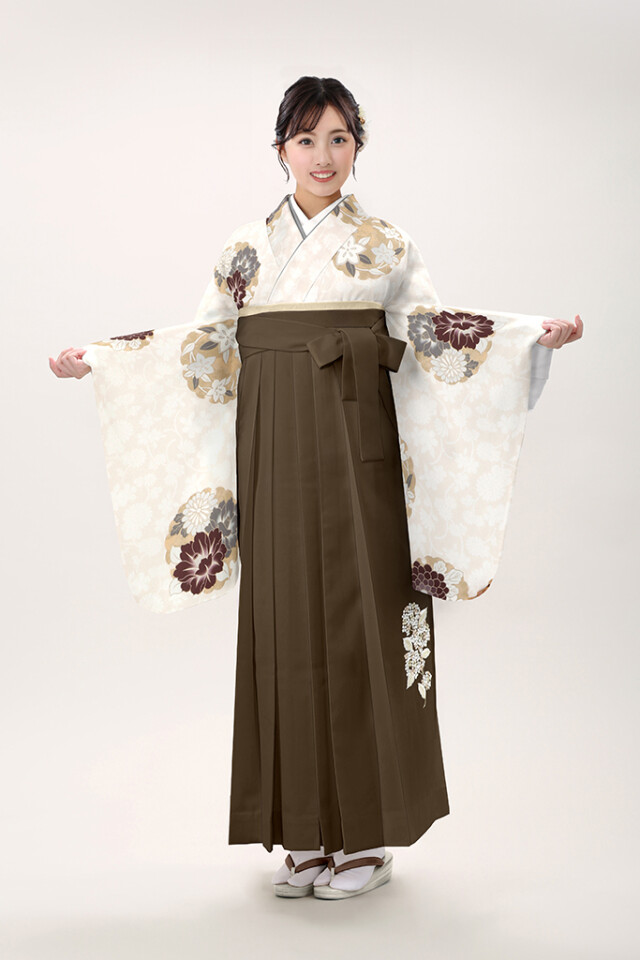 白色 / 茶色 / 柄あり / 着物/袴セット / 二尺