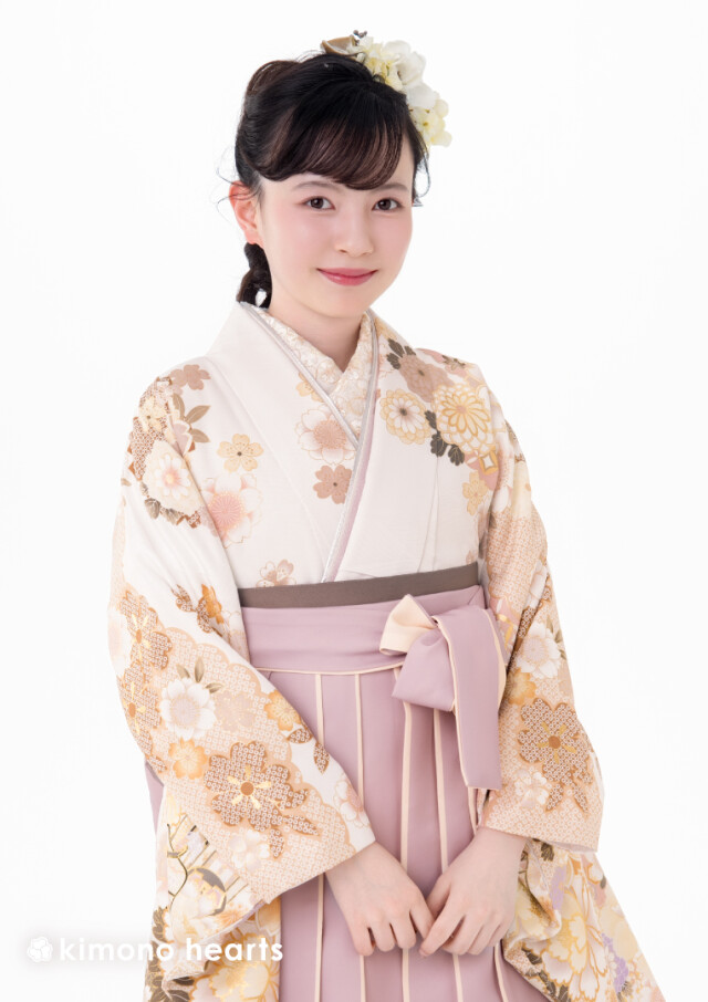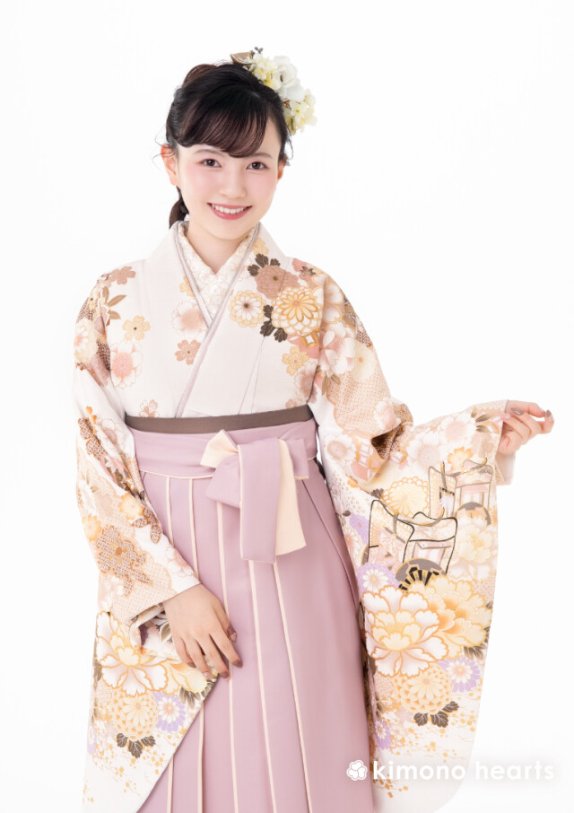 ピンク色 / ベージュ色 / 着物/袴セット / 二尺