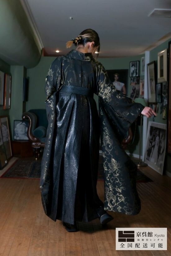 商品形態 | 黒色 / ゴールド色 / 柄あり / 着物/袴セット / 振袖 |