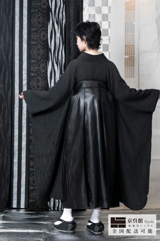 商品説明 | 【クールスタイル】 振袖:生地:シルク100% 袴 :生地:ポリエステル100% 【袴は別途組合せ可能】 黒一色でまとめた無地感の装いに、レザー袴の質感がモードな存在感をプラス。 異素材の組み合わせが生む立体感で、クールかつスタイリッシュな袴スタイルが完成します。 【セット内容】 着物 / 半幅帯 / 袴 / 長襦袢 重ね襟 / 草履 / 着付け道具 ★オプション:バック / ブーツ / 髪飾り / 色柄半襟 / 装飾品 店舗対応時:着付け無料サービス 配送対応時:全国往復送料無料サービス |
