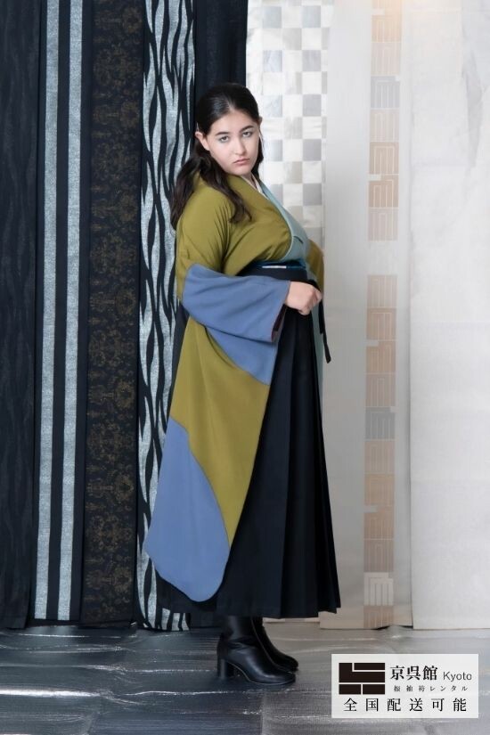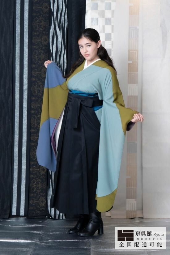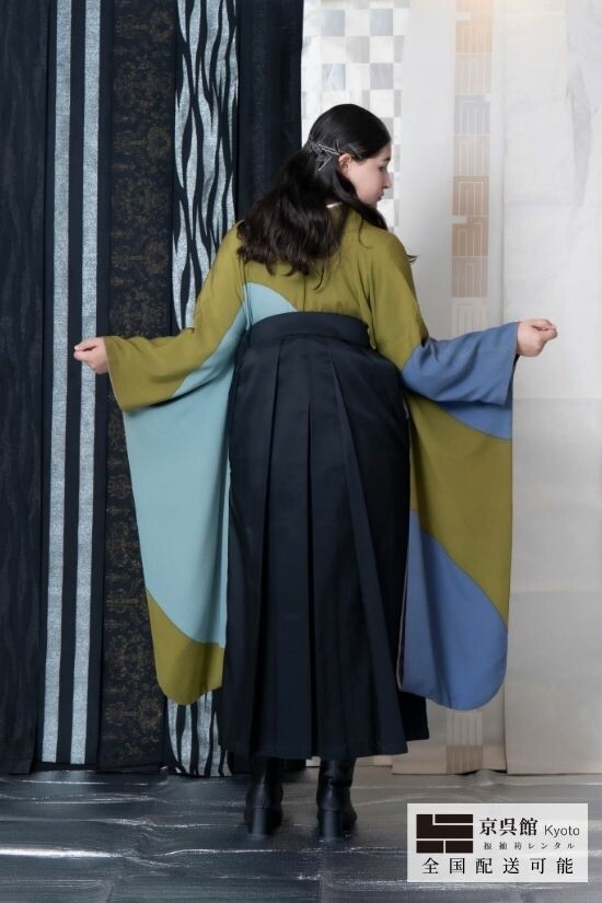 商品説明 | 【モードスタイル】 振袖:生地:シルク100% 袴 :生地:ポリエステル100% 【袴は別途組合せ可能】 淡いブルーとオリーブグリーンを大胆に切り替えた配色が、個性的でアーティスティックな一着。 黒無地袴と合わせれば、色のコントラストが引き立つモダンでスタイリッシュなスタイルが完成します。 【セット内容】 着物 / 半幅帯 / 袴 / 長襦袢 重ね襟 / 草履 / 着付け道具 ★オプション:バック / ブーツ / 髪飾り / 色柄半襟 / 装飾品 店舗対応時:着付け無料サービス 配送対応時:全国往復送料無料サービス |