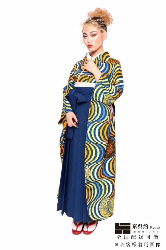 商品説明 | 【モードスタイル】 振袖:生地:コットン100% 袴 :生地:ポリエステル100% 【袴は別途組合せ可能】 鮮やかなブルーとイエローの波紋柄が目を引く、アフリカンプリント生地の華やかなデザイン。 同系色のブルー袴を合わせることで、個性と統一感を両立したモード感あふれる装いに仕上がります。 【セット内容】 着物 / 半幅帯 / 袴 / 長襦袢 重ね襟 / 草履 / 着付け道具 ★オプション:バック / ブーツ / 髪飾り / 色柄半襟 / 装飾品 店舗対応時:着付け無料サービス 配送対応時:全国往復送料無料サービス |