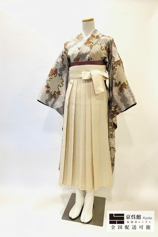 商品説明 | 【エレガントスタイル】 振袖:生地:シルク100% 袴 :生地:ポリエステル100% 【袴は別途組合せ可能】 上品なグレーベースに、秋色の花模様が映えるクラシカルな振袖。 柔らかな生成りの袴を合わせることで、気品と落ち着きを感じさせる大人の装いに。 【セット内容】 着物 / 半幅帯 / 袴 / 長襦袢 重ね襟 / 草履 / 着付け道具 ★オプション:バック / ブーツ / 髪飾り / 色柄半襟 / 装飾品 店舗対応時:着付け無料サービス 配送対応時:全国往復送料無料サービス |
