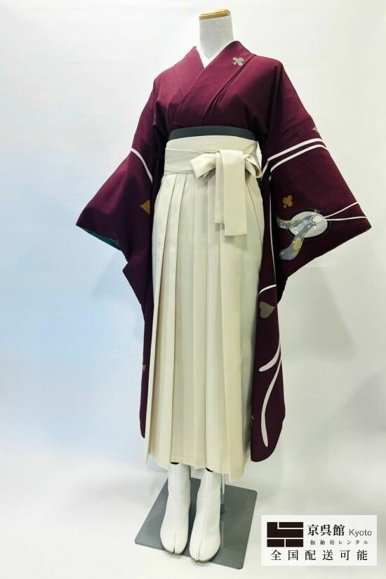商品説明 | 【かわいいスタイル】 振袖:生地:シルク100% 袴 :生地:ポリエステル100% 【袴は別途組合せ可能】 深みのあるワインレッド地に、リボンやクローバーのワンポイントを配した遊び心ある振袖。 生成りの袴を合わせることで、大人可愛い印象と華やぎを兼ね備えた卒業式コーデに。 【セット内容】 着物 / 半幅帯 / 袴 / 長襦袢 重ね襟 / 草履 / 着付け道具 ★オプション:バック / ブーツ / 髪飾り / 色柄半襟 / 装飾品 店舗対応時:着付け無料サービス 配送対応時:全国往復送料無料サービス |