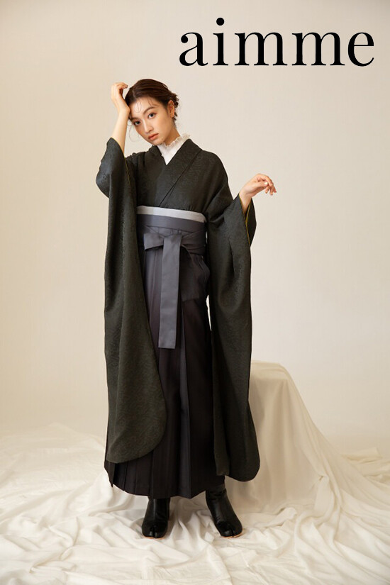 商品説明 | aimmeオリジナル墨鶯×グレーグラデーション袴。落ち着いた色味ですがフリル襟を加えることで可愛さもプラス |