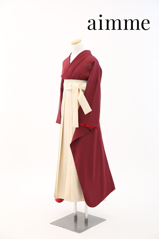 商品説明 | 暗めなボルドーカラーのシンプルなヴィンテージ振袖に白袴を合わせたコーデ。 |
