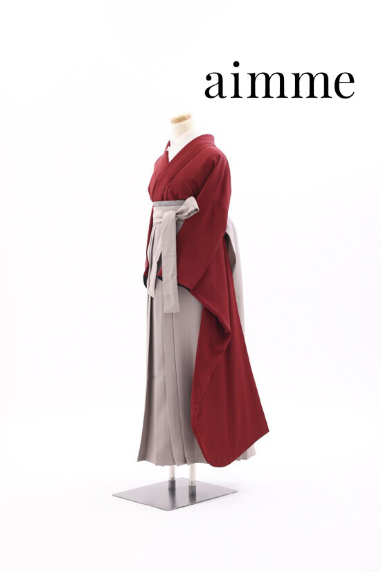 商品説明 | ボルドーカラーのシンプルな振袖にモカグレージュを合わせた大人色コーデ。くすんだグレージュの袴と相性抜群です。 |