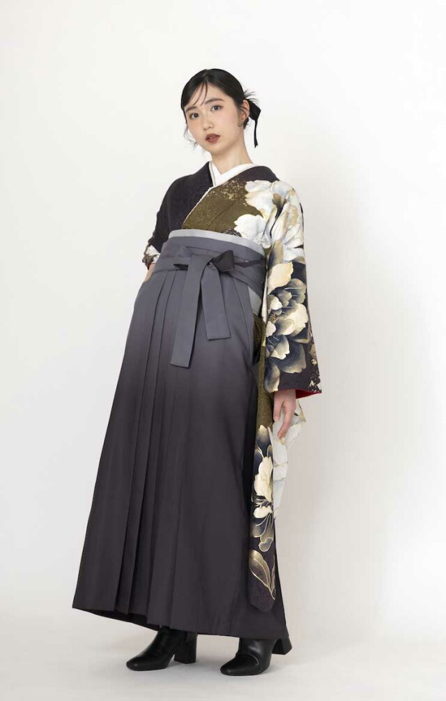 商品説明 | カーキとグレーの袴でクールなコーディネートに。 |