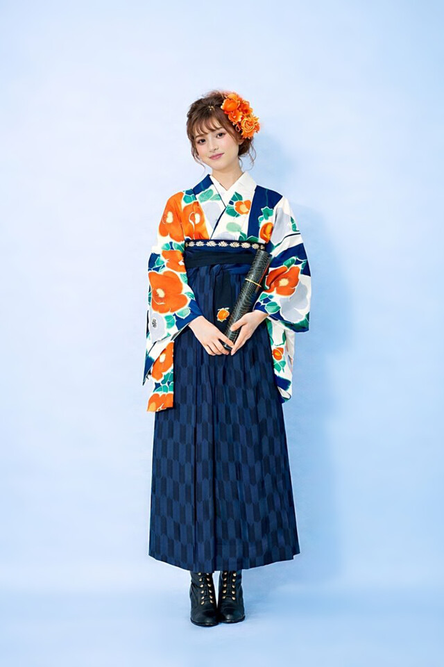 商品形態 | 青色 / オレンジ色 / 柄あり / 着物/袴セット / 二尺 |