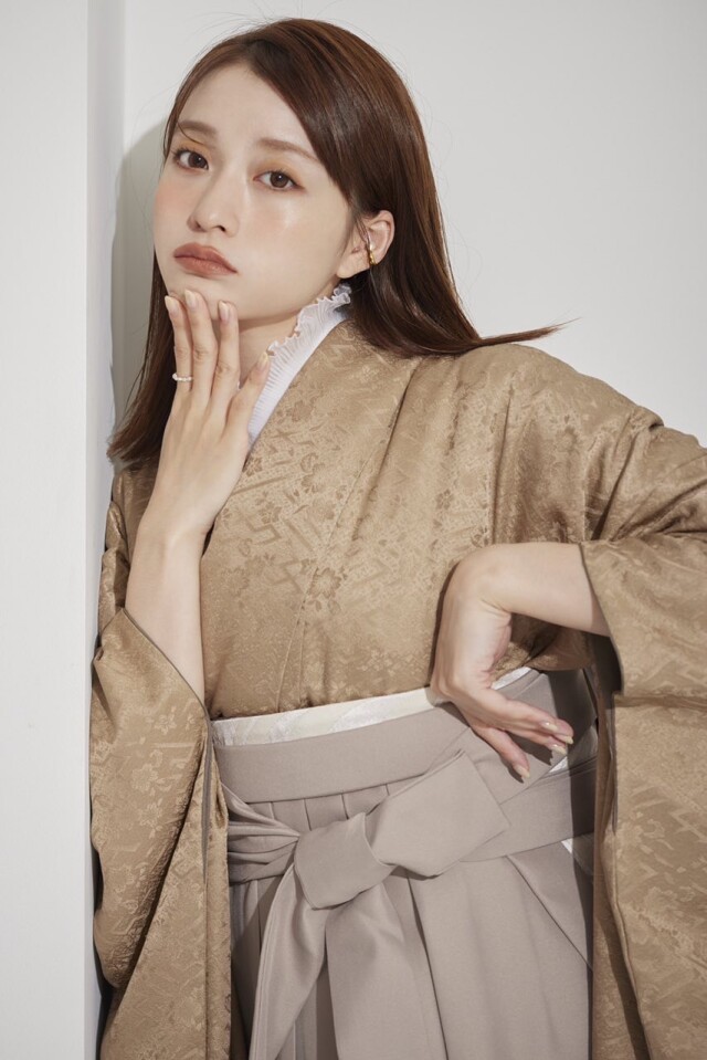 商品説明 | aimme moca HAKAMA ベージュ系のブラウンで、柔らかく温かみのある印象。 黒の凛々しさ、アイボリーの華やかさとは違い、ほんのり大人っぽく落ち着いた雰囲気に。 ナチュラルで今っぽいトレンド感も◯ 近年の卒業袴では、くすみ系カラーやナチュラルカラーが注目されておりモカは肌馴染みがよく、写真映えも自然でおしゃれ。 白や淡いパステル系の着物に合わせるとよりやさしい印象に。 帯や小物で華やかさを加えやすく、コーディネート次第でナチュラルにもモダンにも変化可能。 黒・紺・アイボリーほど多くない色なので、友人とかぶりにくく個性を演出できます。 |