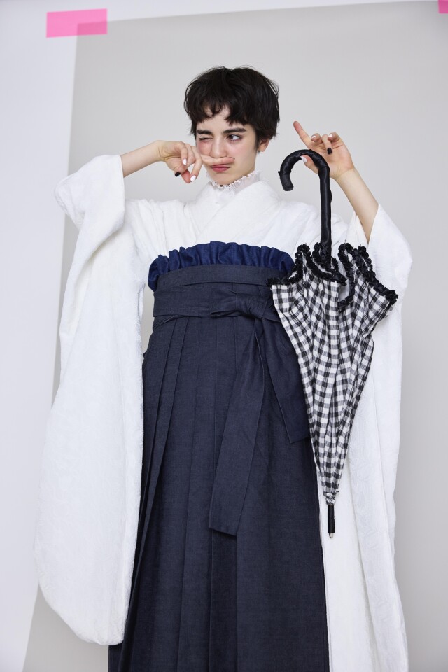 商品名 | aimmeオリジナル振袖 ホワイトレース×デニム袴 |