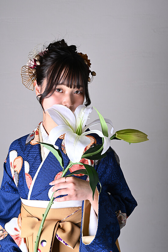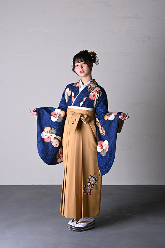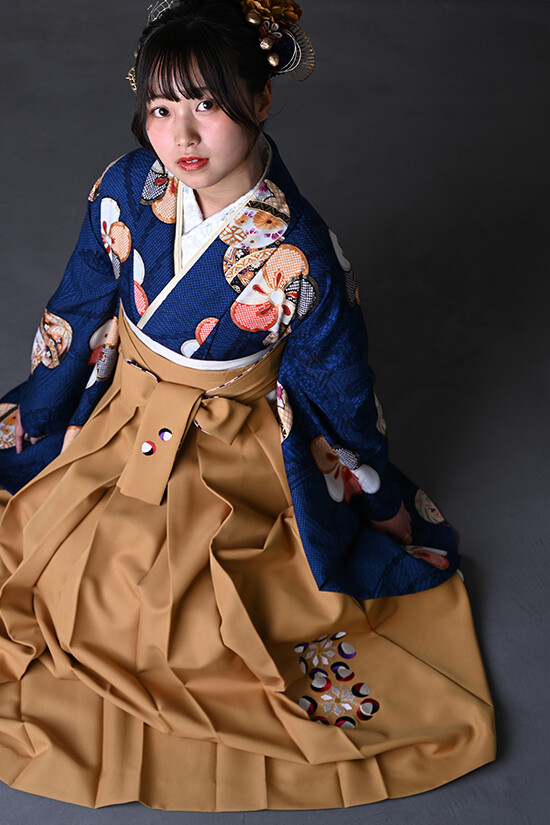 商品説明 | 着物_No.1706 九重 ねじり梅とまり 紺 袴_No.1144C 紅一点×EMMA かざぐるま カラシ |