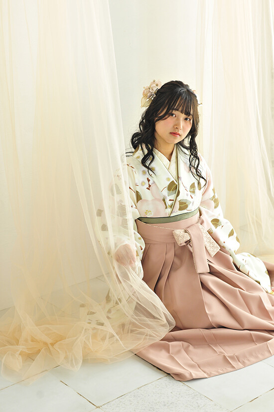 商品説明 | 着物_No.1838 ぼかしつばき クリーム 袴_No.1180B 丸菊 ピンク |