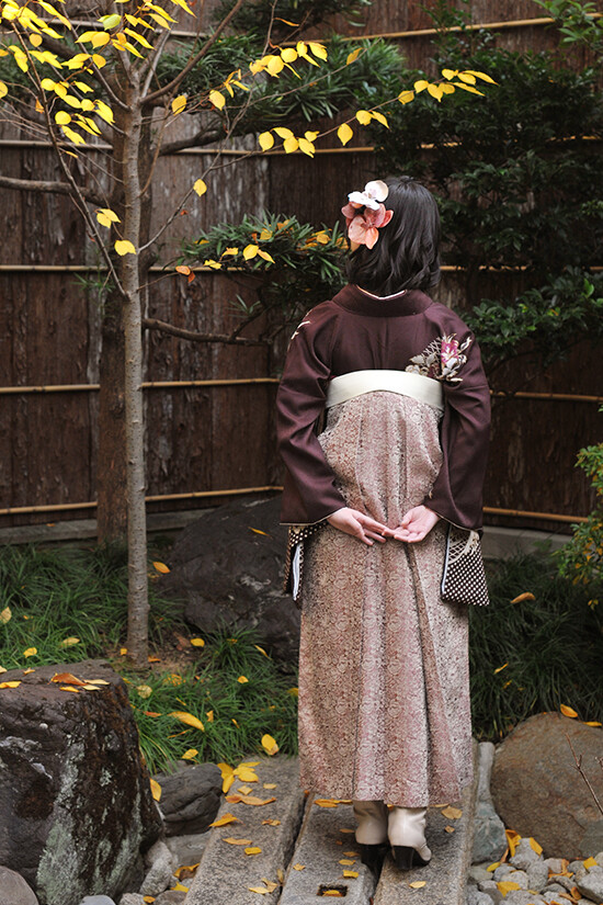 商品説明 | 着物_No.1883 桜田ひより×百華 Flower polka dot 濃茶 袴_No.1211 Raffine ジャガード織 くすみピンク |