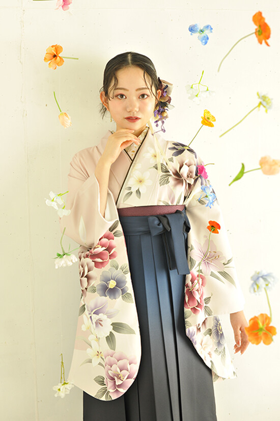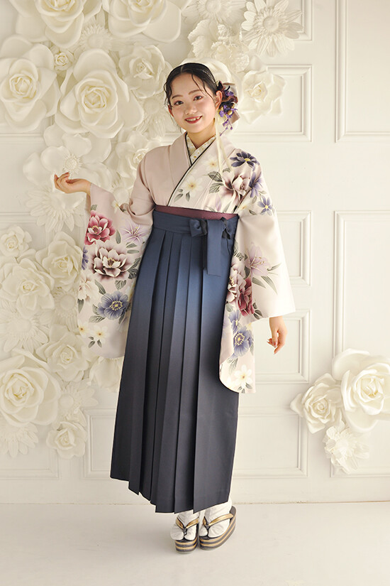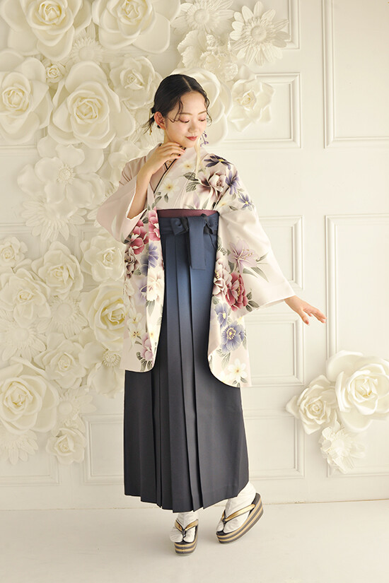商品説明 | 着物_No.1806 ゆり ペールピンク 袴_No.2001B ぼかし 藍 |