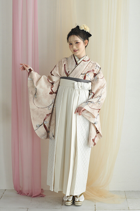 商品説明 | 着物_No.1823 Heather リボン ピンク 袴_No.1219 Heather レース切り替え オフホワイト |