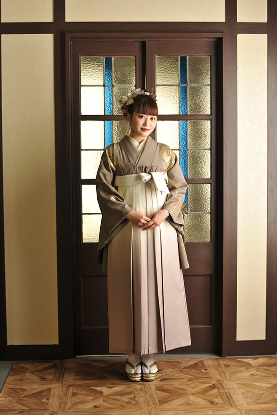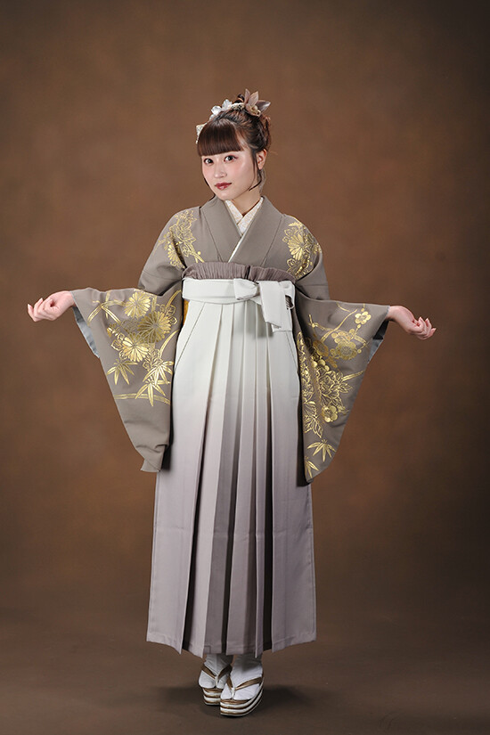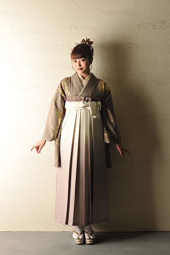 商品説明 | 着物_No.1858 天翔天音 金彩 グレージュ 袴_No.2009D 紐縞グラデーション ラテ |