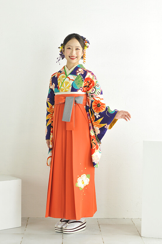 商品説明 | 着物_No.1575 kariyazaki 松竹梅菊 クリーム 袴_No.1145B 九重 一輪つばき オレンジ |
