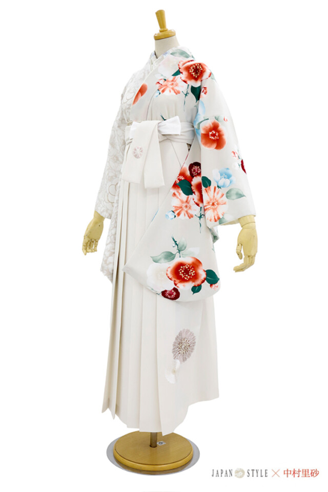 商品説明 | JAPAN STYLE x 中村里砂 2026 HAKAMA COLLECTION (くすみカラー/ベージュ/おしゃれ/レトロ/椿柄) 今年のシーズンコンセプトは、 “ 大正〜明治の名花 ” ー life is beautiful ー 日本の美しい女性を喩える「名花」をイメージした、 古典紋様をモダンな印象に仕上げた袴シリーズです。 明治〜大正時代をオマージュした叙情的な世界を 中村里砂氏の独特な世界観でお贈りします。 袴はオフホワイト系でかわいい印象に♥ |