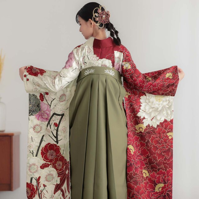 商品説明 | 人気ブランド「華徒然×吉木千沙都」のお振袖を袴で。縁起のよい紅白カラーを基調に、大輪の牡丹が力強く華やかに描かれた片身代わりのデザインは、クラシックな美しさとモダンな感性が絶妙に融合しています。大きく咲き誇る花々が着る人を引き立てる、晴れの日にぴったりの一着です。 振袖袴着用に必要なものが全て揃った安心のフルセットです。 -セット内容- 振袖/袴/半幅帯/重ね衿/草履・バッグ/長襦袢/肌着/帯板/伊達締め/腰ひも5本/コーリンベルト/衿芯/足袋 ※袴はスカートタイプの仕様です。 |