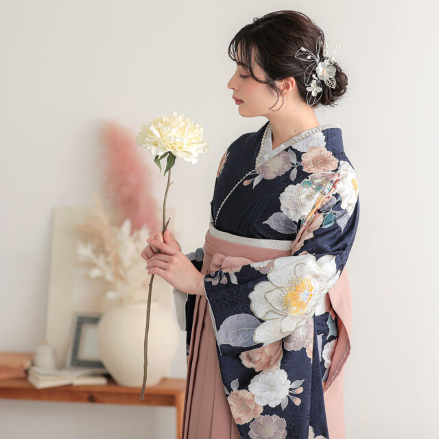 商品説明 | 紺を基調に、牡丹に雪輪を描いたお振袖で、美しい柄行と柔らかな色合いが特徴的です。シンプルでありながら洗練されたデザインは様々なシーンに合う一枚です。 振袖袴着用に必要なものが全て揃った安心のフルセットです。 -セット内容- 振袖/袴/半幅帯/重ね衿/草履・バッグ/長襦袢/肌着/帯板/伊達締め/腰ひも5本/コーリンベルト/衿芯/足袋 ※袴はスカートタイプの仕様です。 |
