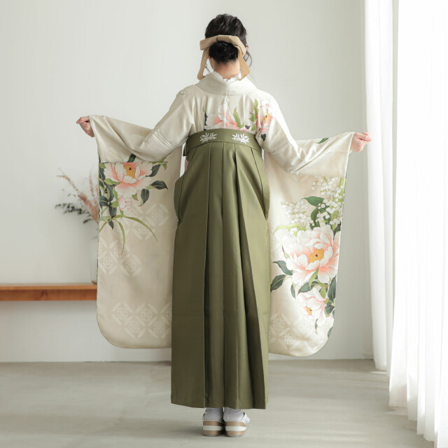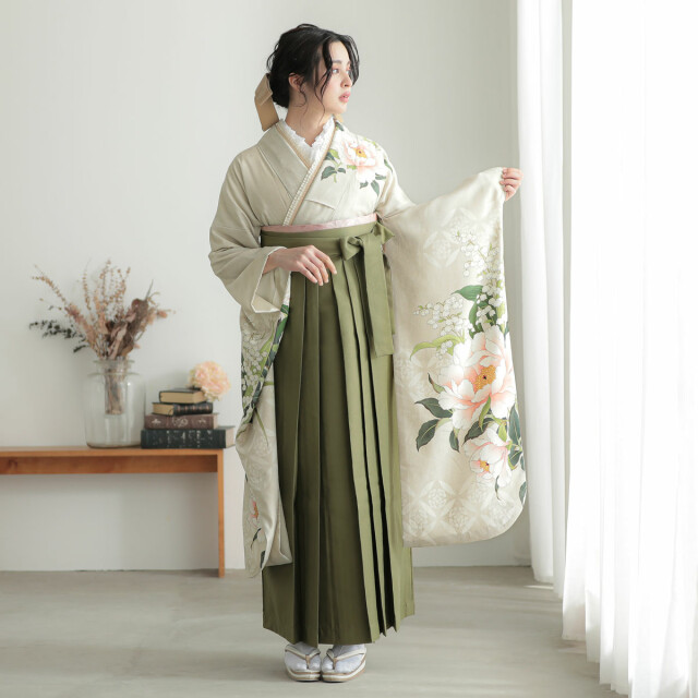 商品説明 | 肌馴染みの良い柔らかなベージュをベースに、大輪の芍薬をあしらった、気品あふれる振袖です。 流行に左右されすぎないクラシカルな美しさと、今の気分にぴったりの「ニュアンスカラー」を掛け合わせた、特別感のある一着となっています。 振袖袴着用に必要なものが全て揃った安心のフルセットです。 -セット内容- 振袖/袴/半幅帯/重ね衿/草履・バッグ/長襦袢/肌着/帯板/伊達締め/腰ひも5本/コーリンベルト/衿芯/足袋 ※袴はスカートタイプの仕様です。 |