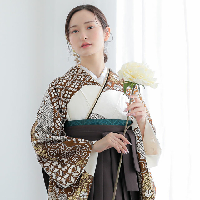 商品形態 | 茶色 / 白色 / 柄あり / 着物/袴セット / 振袖 |