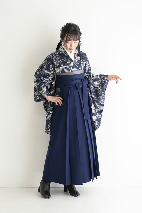 商品説明 | 全身をネイビーでまとめた、モードな雰囲気の卒業袴コーディネート。 |