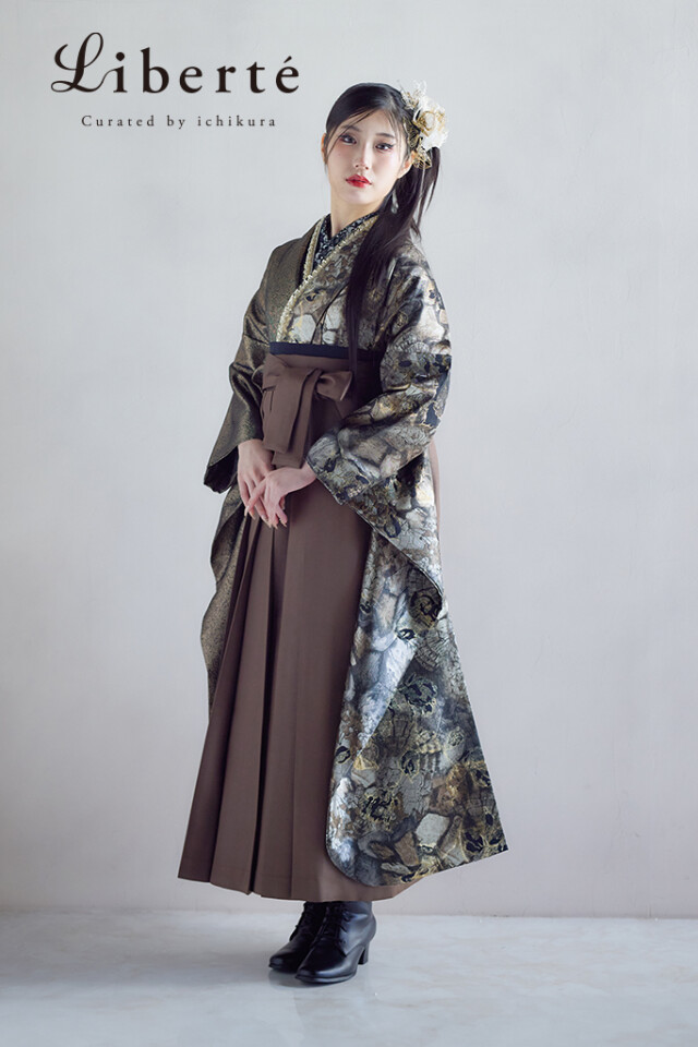 商品形態 | ゴールド色 / 茶色 / 柄あり / 着物/袴セット / 振袖 |