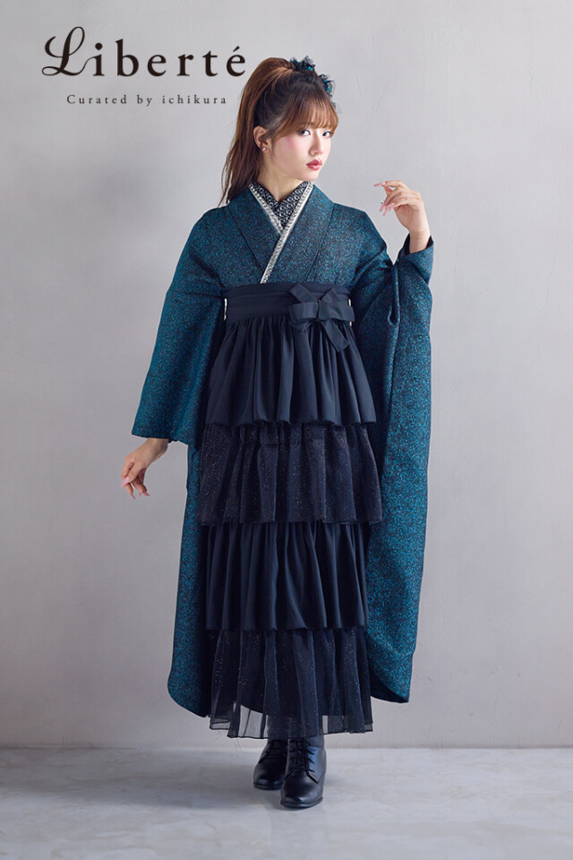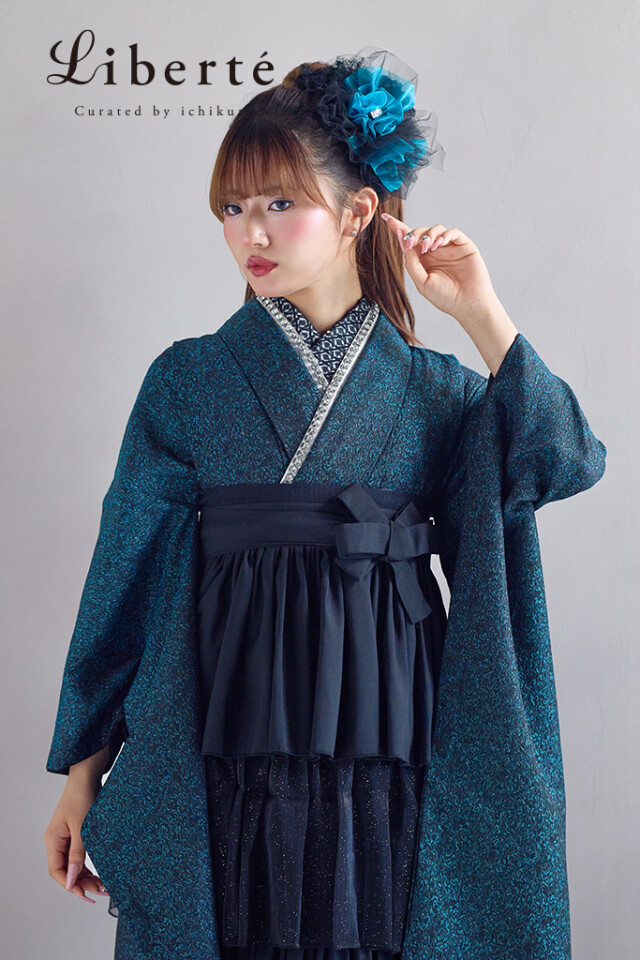商品形態 | 緑色 / 紺色 / 柄あり / 着物/袴セット / 振袖 |