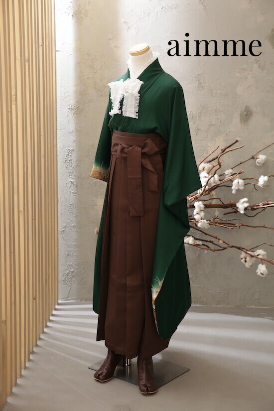 深いグリーンにブラウンの袴で洗練された雰囲気に