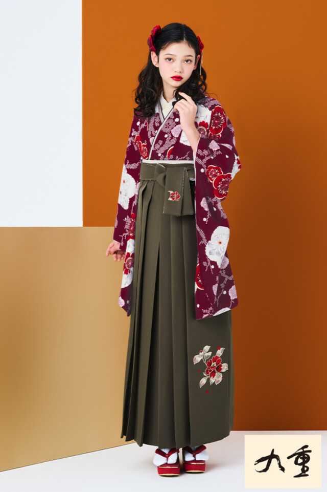 商品名 | 九重ブランド袴ネットレンタル エンジ/ワインレッド 桜柄 正統派古典 大正ロマン 清楚 大人っぽい 落ち着いた袴 R27027 |