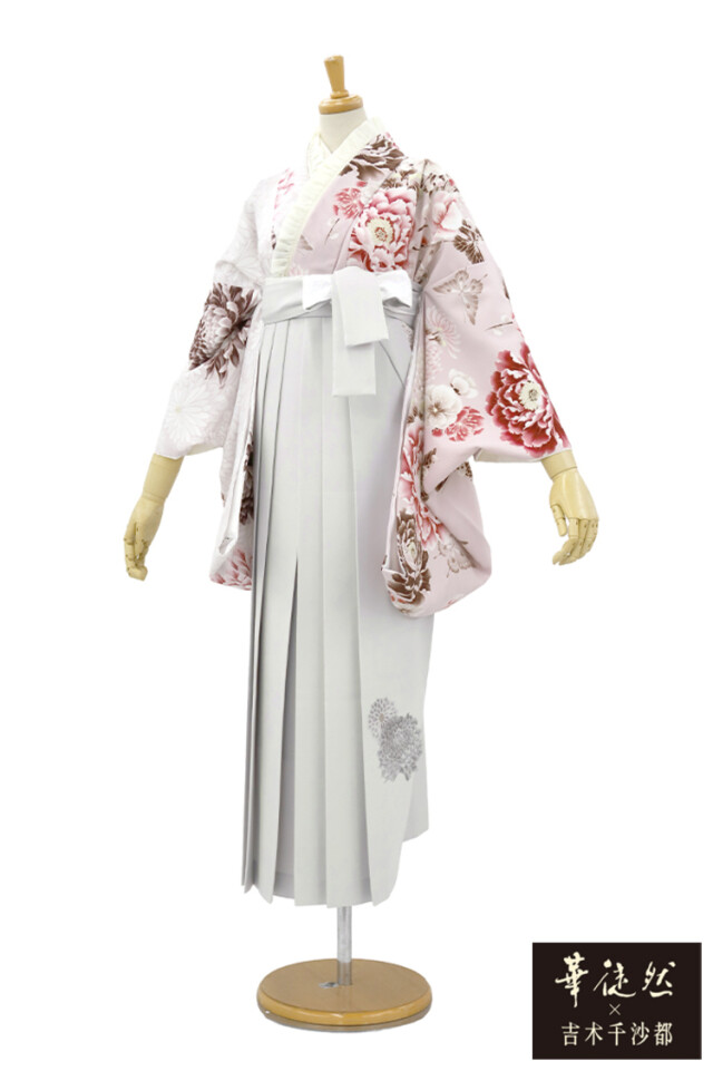 商品名 | 華徒然×吉木千沙都ブランド袴ネットレンタル ピンク 蝶々柄 おしゃれ 淡い色 かわいい袴の着こなし R27046 |
