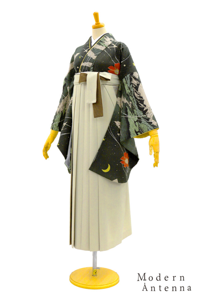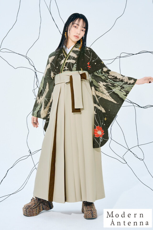 商品名 | モダンアンテナブランド袴ネットレンタル カーキ 機械のブーケ レトロモダン 個性的 人と被らない袴 ブーツスタイル R27039 |